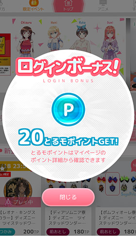 また、ログインボーナスは1日20ポイントもらうことができます。