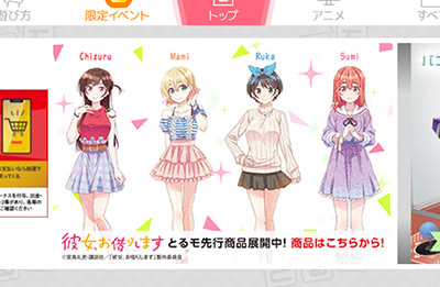 最近話題の「彼女、お借りします」の景品もとるモで先行で展開しています。