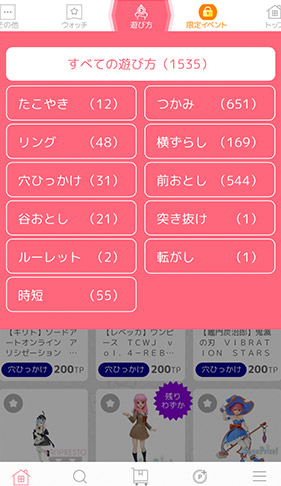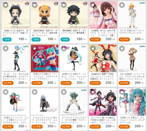 お菓子とかは100TPでプレイできて、その他は150~200TPが多いです。