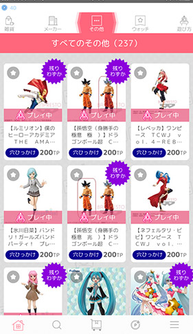 ちなみに、商品ラインナップはプライズ景品がメインとなります。