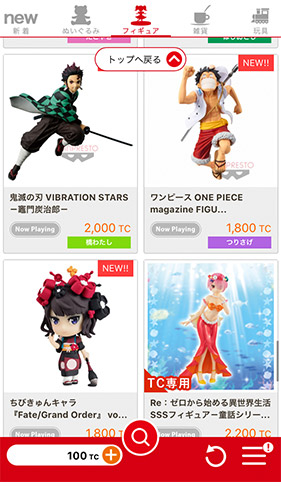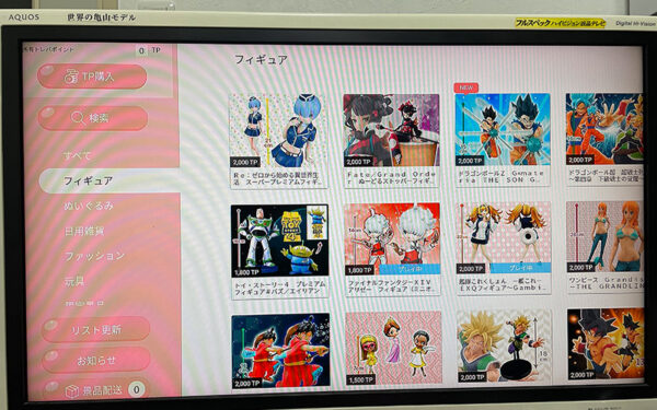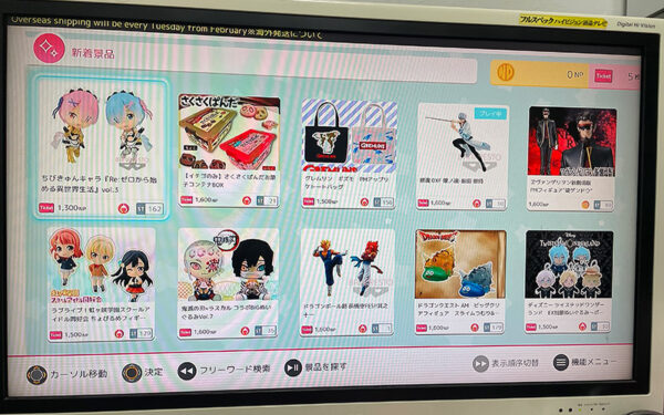 景品ラインナップはプライズ景品に力を入れていて、フュギュアとかは魅力的なものが多い印象です。