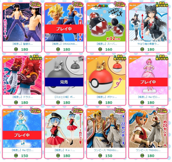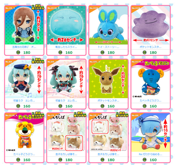 3.0 景品の種類:400種類以上 取り扱い作品数:50種類以上 |