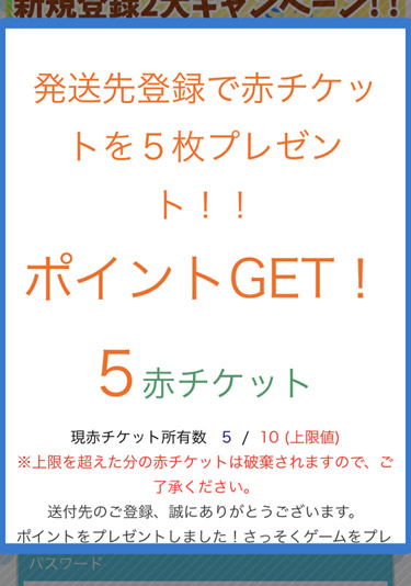 やったれキャッチャーは初回ダウンロード後に住所登録をする事によって無料で遊べる赤チケットを5枚もらえます。